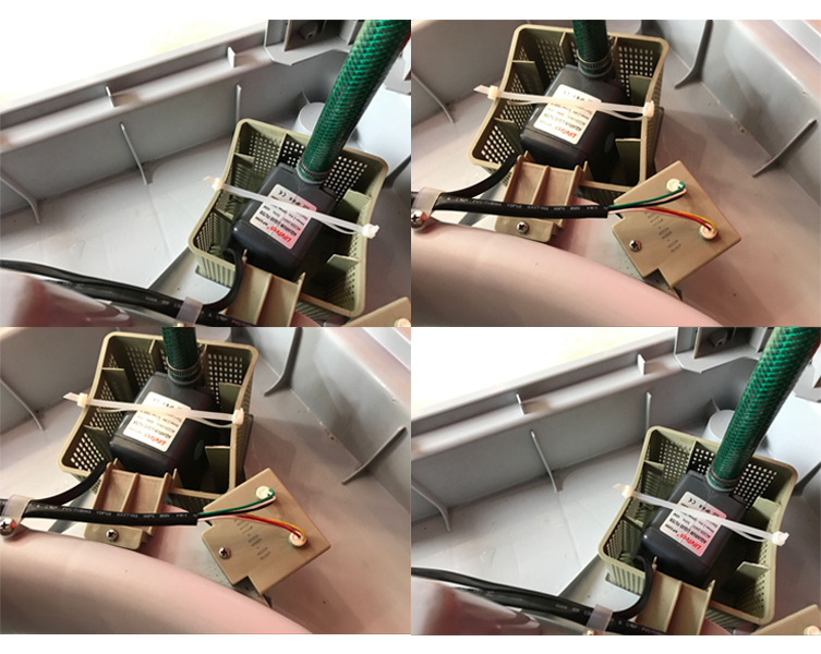 解決方法:打開(kāi)空調(diào)主機(jī),看濕簾是不是干的,如果是干的,先檢查空調(diào)主機(jī)底盤(pán)的水盤(pán)中有沒(méi)有水,如果有水,再檢查水泵的接線(xiàn)端子是否有脫落現(xiàn)象,如正常連接,再檢查空調(diào)主板有無(wú)損壞,如主板無(wú)損壞,可初步確定為水泵損壞,我們可以用萬(wàn)用表來(lái)檢測(cè)水泵的電阻值。水泵的正常電阻值為: Ω,如果測(cè)量超出這個(gè)范圍,我們可以確認(rèn)為水泵損壞。