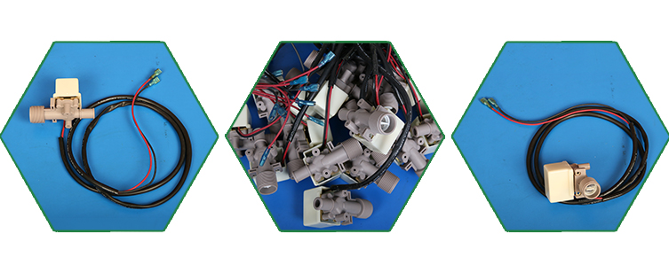 解決方法:初步確定為進水系統(tǒng)故障,首先確認進水系統(tǒng)總開關及分開關是否打開,如正常打開,再檢查進水過濾器鋼絲過濾網是否堵塞,如無堵塞,再擰開進水閥接頭,檢查進水閥過濾網有無堵塞,如無堵塞,再用手托起水位感應器浮球,觀察進水閥有無變化,如無變化,可以初步確定為水位感應器或進水閥損壞,我們可以用萬用表來檢測進水閥的電阻值。進水閥的正常電阻值為: Ω,如果測量超出這個范圍,我們可以確認為進水閥損壞。